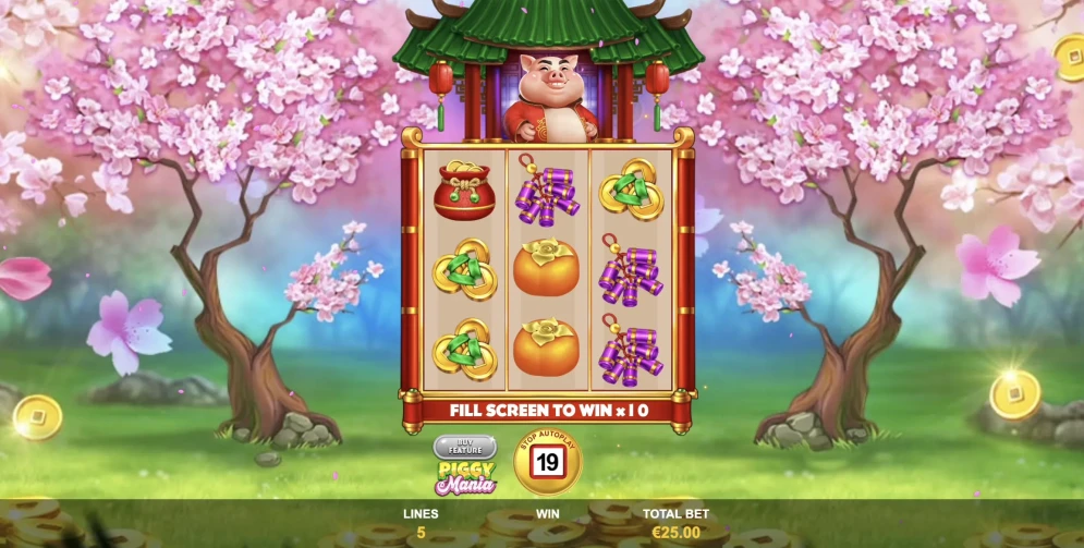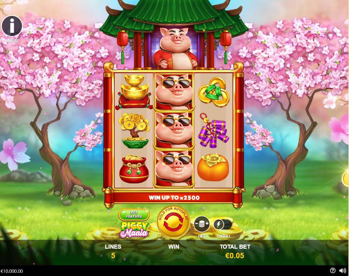 - Recursos especiais: Wild, Piggy Mania Respins e Win 10x