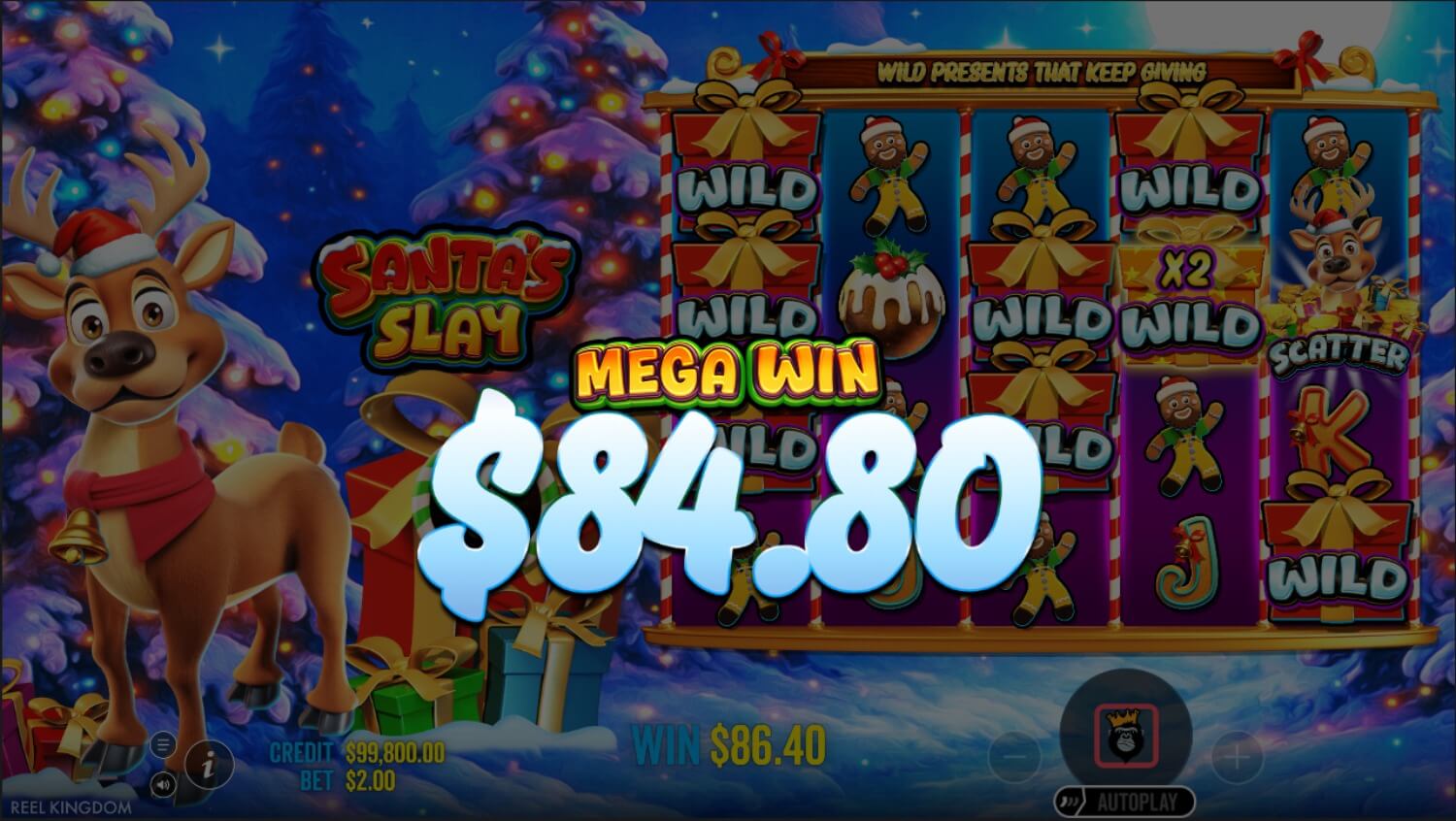 O Santa’s Slay é um jogo de cassino do tipo slot ambientado no clima de Natal. A proposta é oferecer uma experiência temática leve, com símbolos festivos, trilha sonora característica e um bônus focado na adição de Wilds fixos durante os giros grátis.